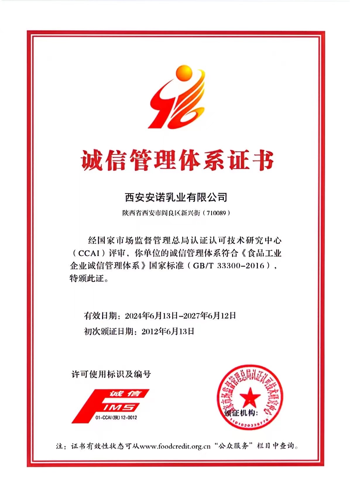 西安安諾乳業(yè)有限公司被評(píng)定為“區(qū)級(jí)放心消費(fèi)示范單位”